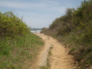 この写真はTHE OVERSEAのショップカードに使われているモントークの海岸のあぜ道の写真です。